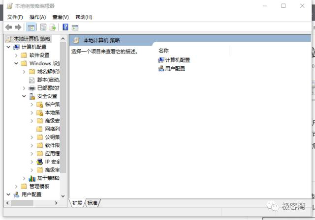 3、在左侧边栏中,依次选取“Windows设置-安全设置-IP安全策略,在“本地计算机”
