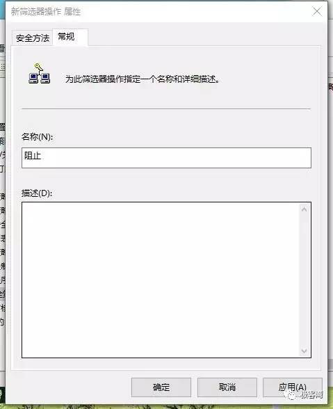 17、在新筛选器操作属性中,选择“阻止”,并切换到常规选项卡,将名称改为阻止。