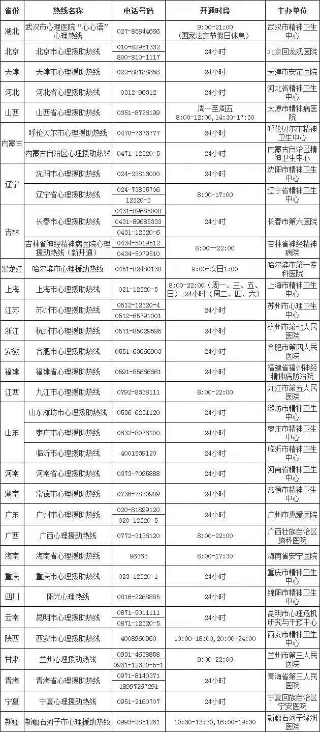 鉴于在疫情发展中及控制后对心理干预的大量需求,我们同时提供全国心理援助热线电话,供英国365因新型冠状病毒感染的肺炎疫情产生心理压力、急需情绪缓解的学生使用。