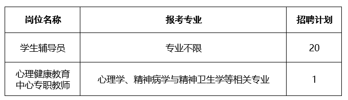 根据学校事业发展需要,现面向社会公开招聘学生辅导员、心理健康教育中心专职教师。