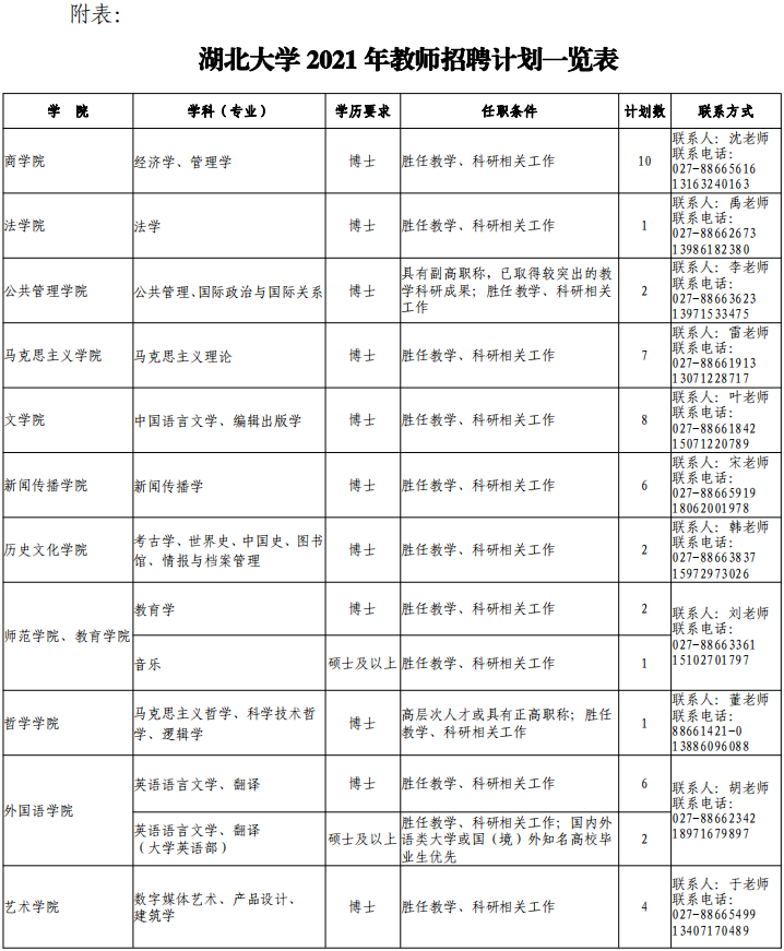 (二)教师招聘:见《英国365上市公司官网2021年教师招聘计划一览表》