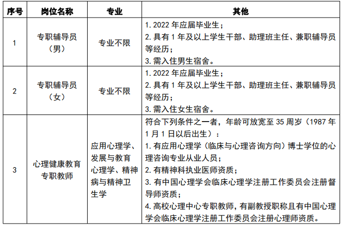 根据学校事业发展需要,现面向社会公开招聘专职辅导员、心理健康教育专职教师26人。