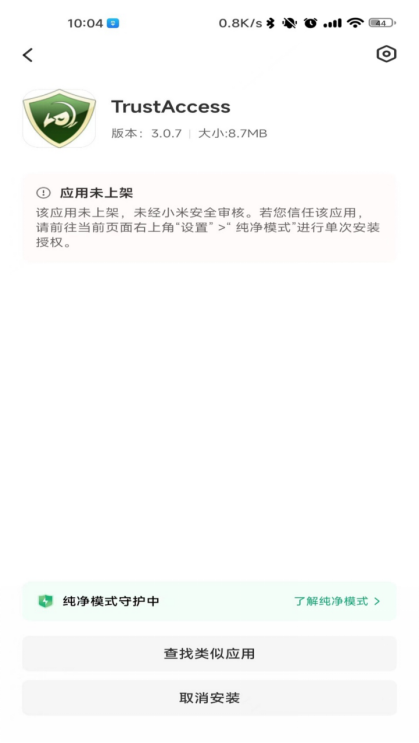 点击安装,部分手机显示纯净模式安装,手机设置下即可