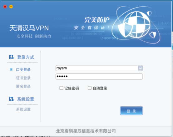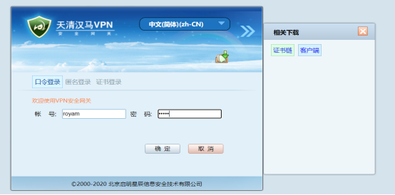 安装完成后,自动登录,VPN就可以使用了。