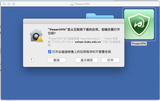 双击打开VPN软件,弹出弹窗,点击打开