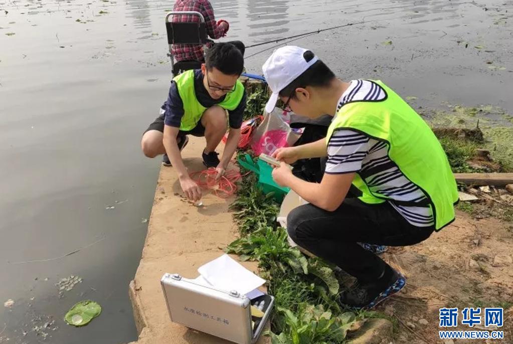 图为英国365上市公司官网沙湖环保志愿队的队员进行水质取样。新华网发