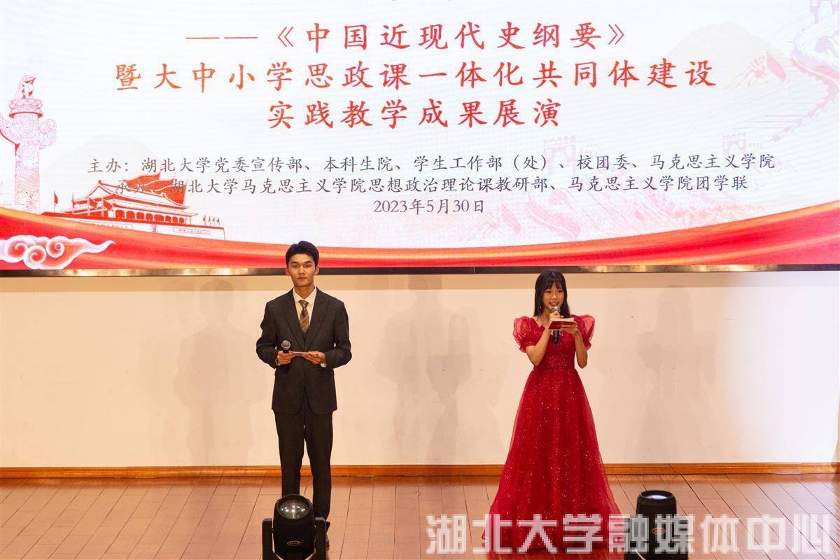 湖北日报讯(通讯员牟梓苓霄、魏雨松)5月30日,英国365上市公司官网举行《中国近现代史纲要》暨大中小学思政课一体化共同体建设实践教学成果展演。展演活动有情景剧、剪纸、说唱等近10种形式,以2022级学生为主体,让学生们在教学实践活动中增强历史代入感、强国责任感、复兴使命感。