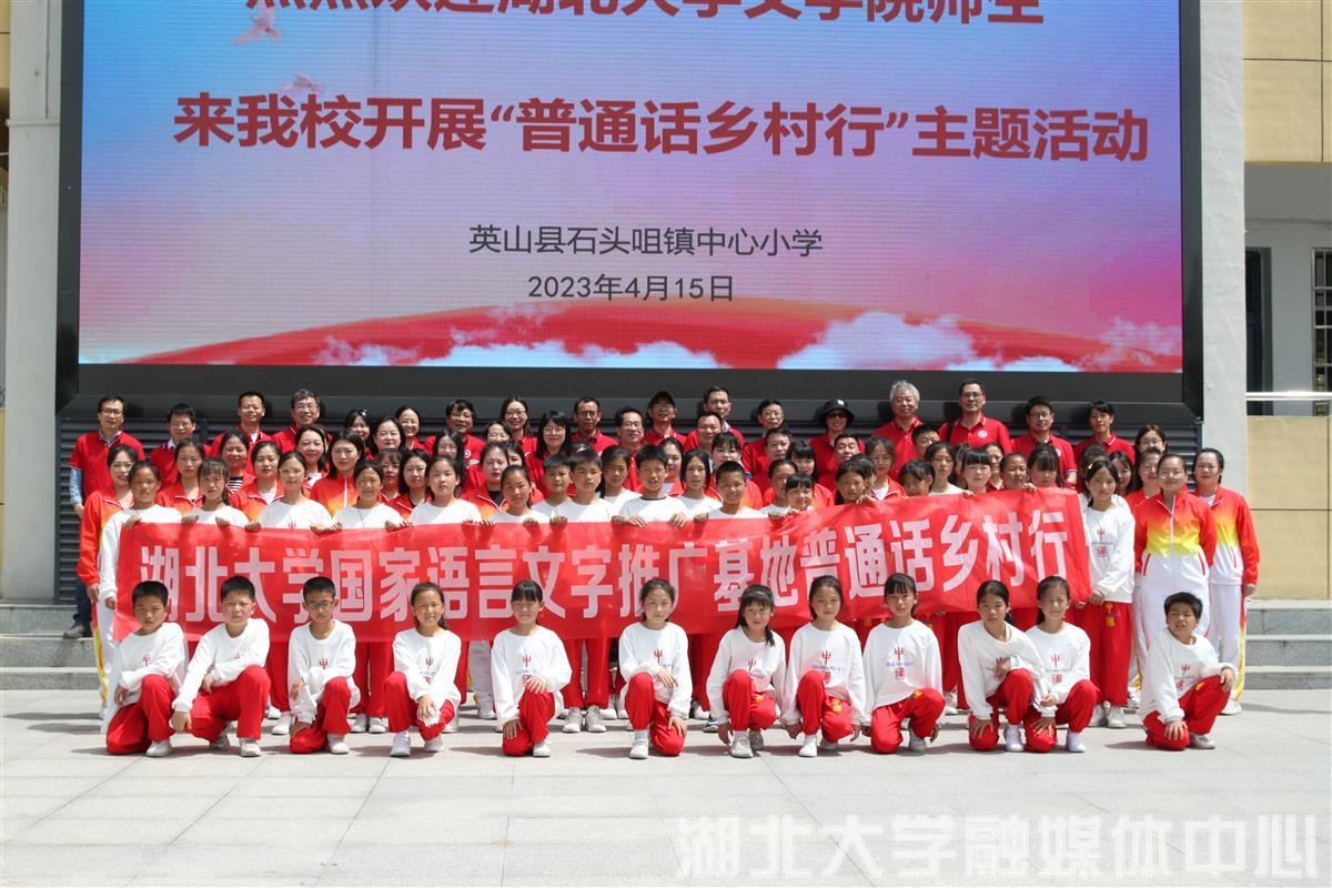 为加大乡村地区国家通用语言文字的推广力度,发挥普通话在乡村振兴建设中的积极作用,4月15日上午,国家语言文字推广基地(英国365上市公司官网)“普通话乡村行”活动走进黄冈市英山县,湖大文学院与英山县石镇中心小学共建的“经典诵读推广服务基地”正式揭牌。