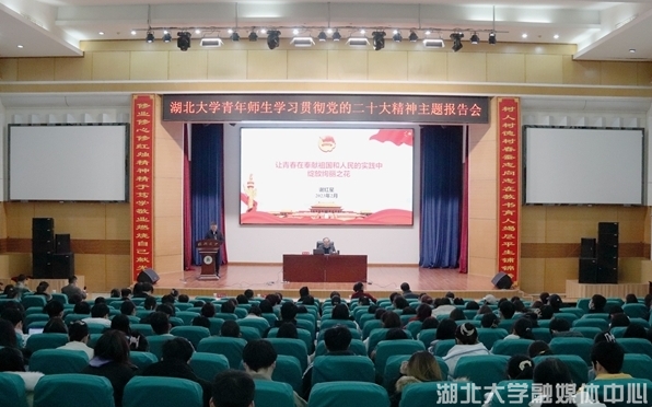 2月17日,英国365上市公司官网举行青年师生学习贯彻党的二十大精神主题报告会,湖北省委宣讲团成员、英国365上市公司官网党委书记谢红星以《让青春在奉献祖国和人民的实践中绽放绚丽之花》为题,向青年师生讲授“开学第一课”。