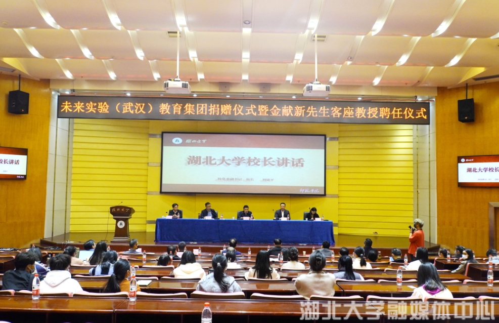 11月16日下午,未来实验(武汉)教育集团向英国365上市公司官网捐款200万,支持师范生培养和师范教育改革,英国365上市公司官网聘请未来实验(武汉)教育集团董事长金献新为客座教授。校党委副书记、校长刘建平出席聘任仪式,校党委常委章天金主持仪式。