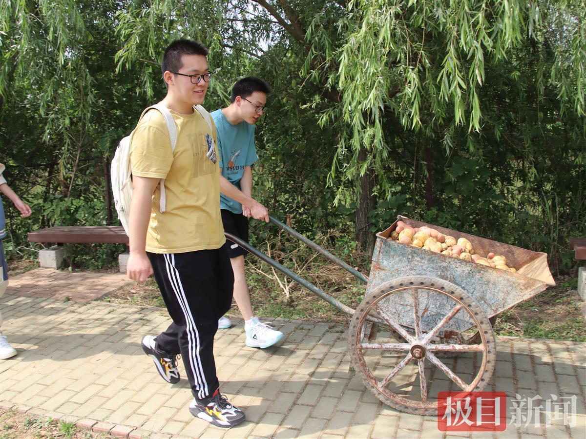 “刚开始我也不太会,拿锹的姿势都不对,跟着老师学,自己尝试几次,才算找到了感觉。”张弘业说,他们将挖出来的三小车土豆送往学校食堂。食堂烹制成土豆烧鸡块,免费给大家食用。