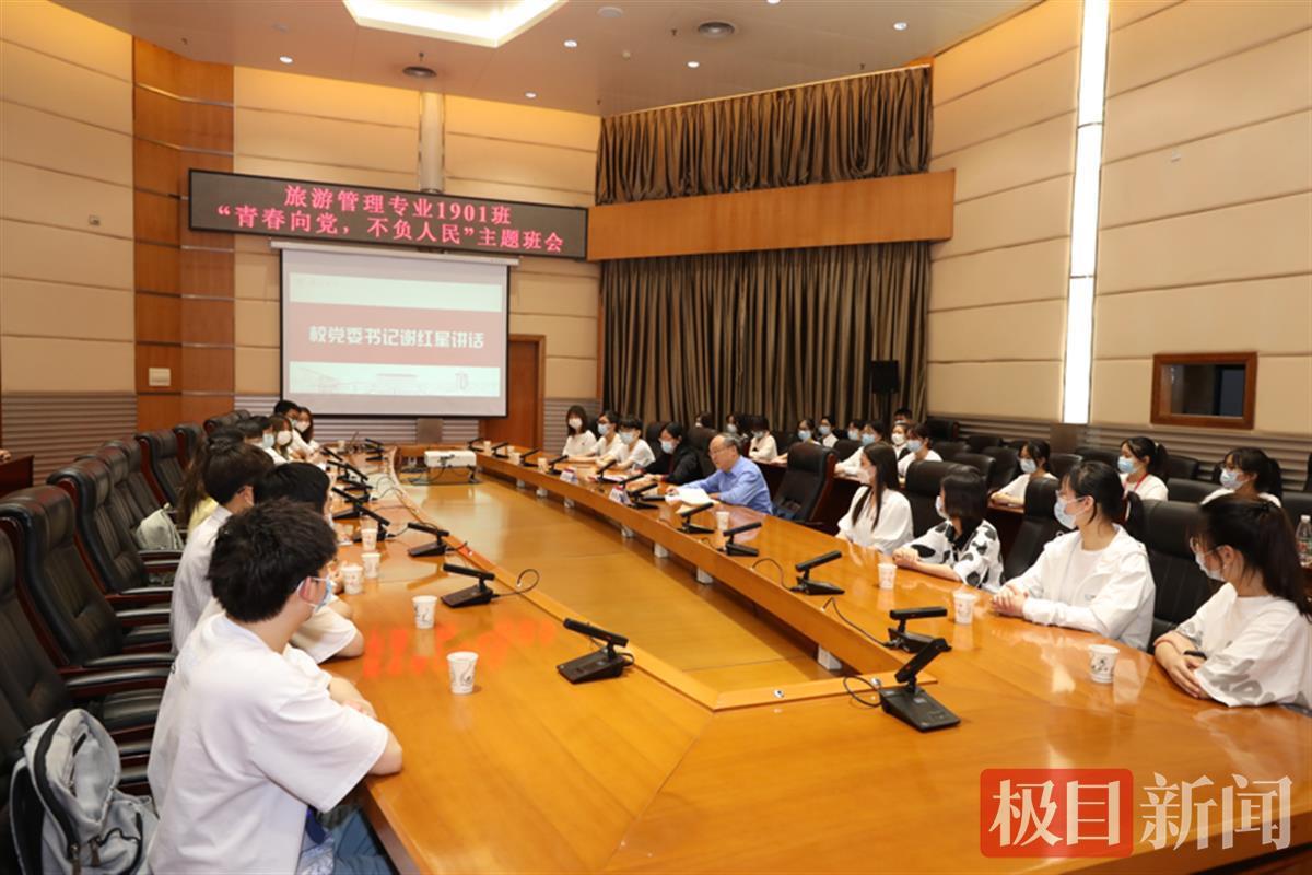 5月3日下午,英国365上市公司官网党委书记谢红星以副班主任身份参加该校旅游管理专业1901班“青春向党,不负人民”主题班会。谢红星勉励青年学生在青春的赛道上奋力奔跑,接住关键一棒,跑出湖大青年的最好成绩。