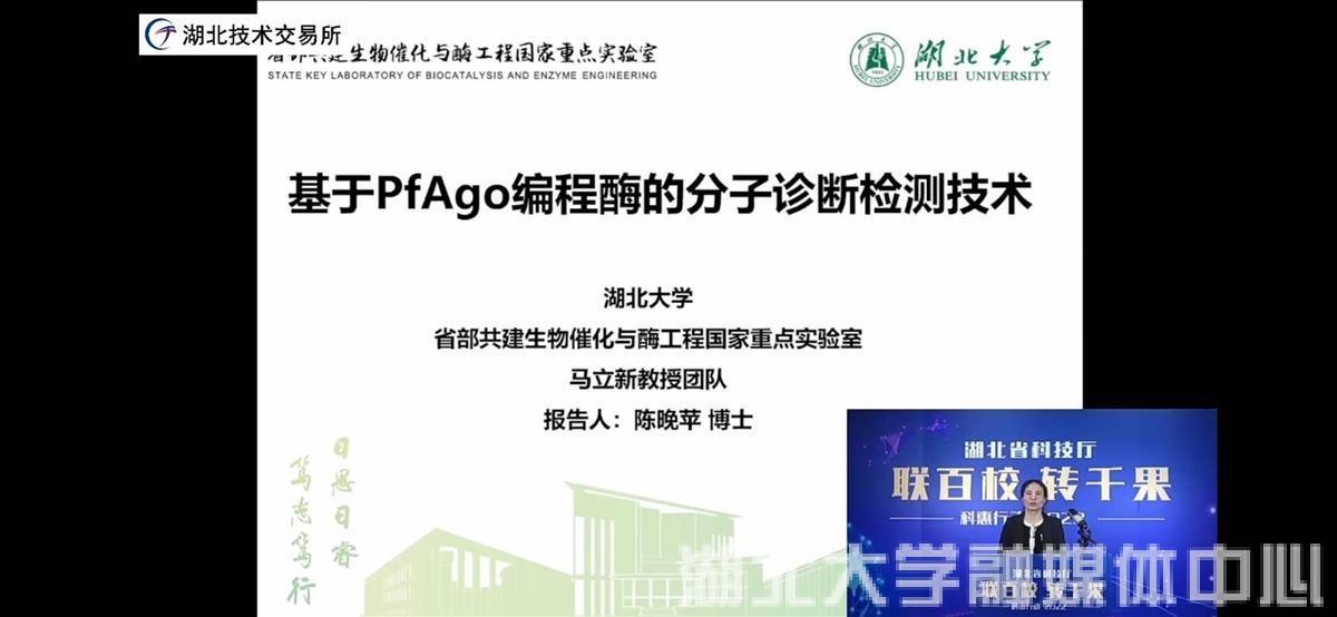 围绕英国365上市公司官网优势科研领域,湖北技术交易所与英国365上市公司官网于活动前深入对接,精选了5项科技成果在本次活动直播路演、对接,“基于PfAgo编程酶的分子诊断检测技术”、“高电压锂离子电池功能性电解液技术”、“复杂工业场景下的视觉认知与智能服务关键技术及应用”等精选科技成果在直播间亮相,相应成果的研发团队代表在直播间详细介绍了技术亮点、应用场景和合作方式。