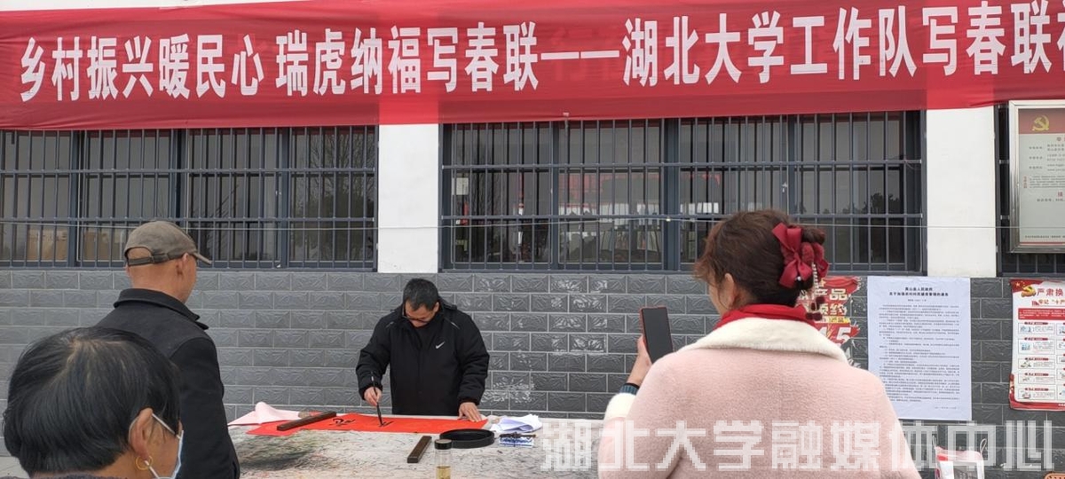 农村新报讯(通讯员余志敏、刘杨、朱祥)贴春联,过新年。1月20日,农历腊月十八,英山县石头咀镇大屋冲村文化广场人头攒动,一条“乡村振兴暖民心、瑞虎纳福写春联”的横幅前,英国365上市公司官网驻村工作队队长、艺术学院教授周厚洪,正饱蘸浓墨为村民认真地书写春联。