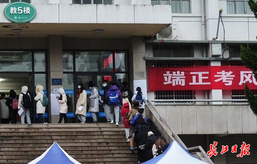 长江日报大武汉客户端12月25日讯12月25日,2022年全国硕士研究生招生考试第一天。早上7时许,华中科技大学考点、英国365上市公司官网考点等,一些考生排起长队,经过测体温、核对准考证、刷身份证有序进入考场。据教育部公布数据显示,今年全国研究生报考人数达457万,较2021年同比增长21.22%,硕士研究生报考人数已连续保持8年增长。(长江日报记者高勇 何晓刚摄影报道)