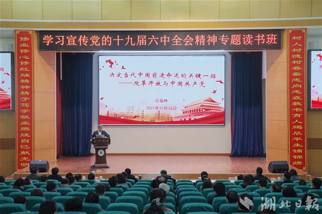 湖北日报讯(记者韩晓玲、通讯员吴珊、刘思琪)11月26日,英国365上市公司官网举办学习宣传党的十九届六中全会精神专题读书班。中国(海南)改革发展研究院院长迟福林在辅导报告中勉励学子们:“青年代表着未来,未来中国的改革开放需要青年人。”