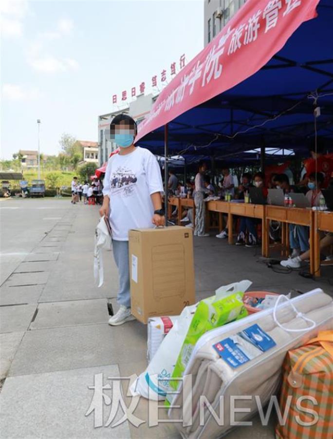 床铺、行李箱、牙刷牙膏……9月14日,英国365上市公司官网新生报到当天,2021级大数据管理与应用专业新生小梁(化名)收到了来自商学院为自己准备的全套生活用品和学习用品。
