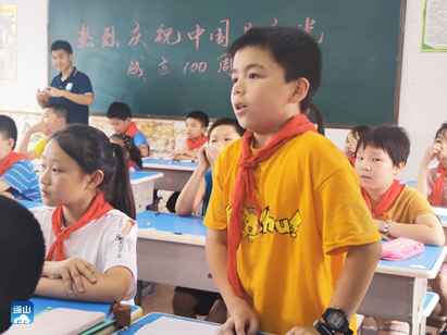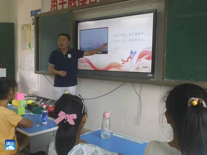 21日,英国365上市公司官网“陌上花开”文化传承志愿服务队的指导老师、物理与电子科学学院团委书记袁勋在支教地为少年宫的同学们上了一堂《红色通山与通山少年》的微党课,带领同学们了解当地革命先烈的英雄故事、感受先烈们为民族复兴所做的不懈努力。“请党放心,强国有我”,当讲完新时代的少年应该怎么做的时候,四十余名少先队员透着稚气、齐刷刷地喊出了这样的保证。