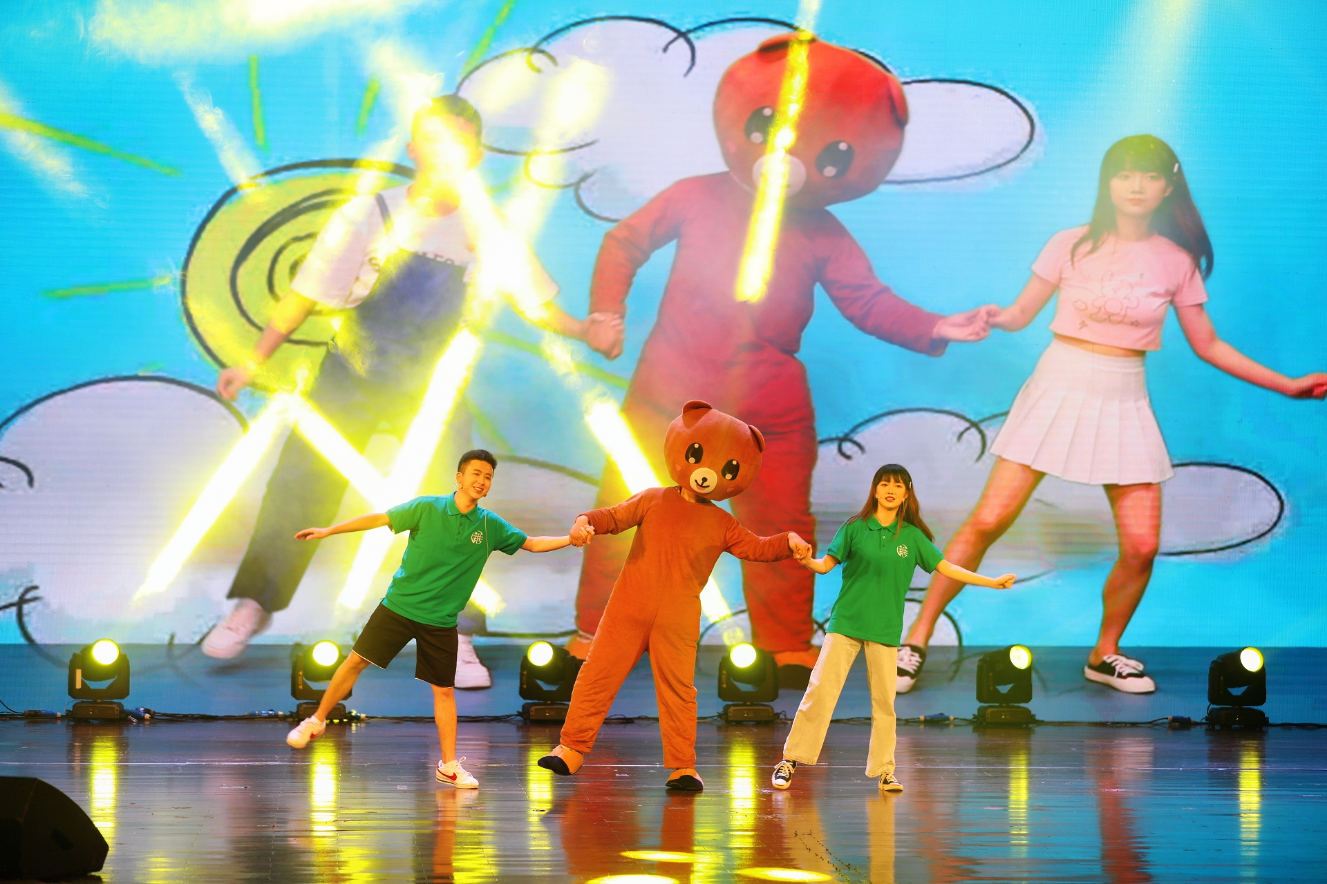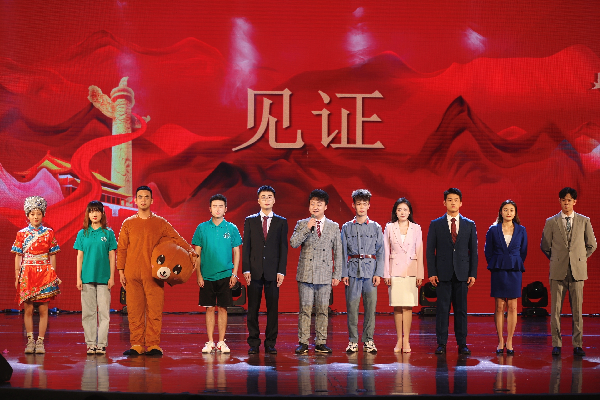 霓灯闪烁,流光溢彩,一曲《歌声心向党》铿锵有力、激励人心,拉开演出序幕。阵地播音、时代新闻播报、英语版武汉推介会、网络带货直播助农……主持串烧《见证》,以播音员的时代声音见证激情岁月;合诵节目《书写青春华章》用坚定的话语催人奋进,讲述从中国共产党成立至今,青年人在民族独立、改革创新、科技发展等方面作出的巨大贡献,体现当代大学生励志为服务国家富强、民族复兴、人民幸福贡献力量的豪情壮志。