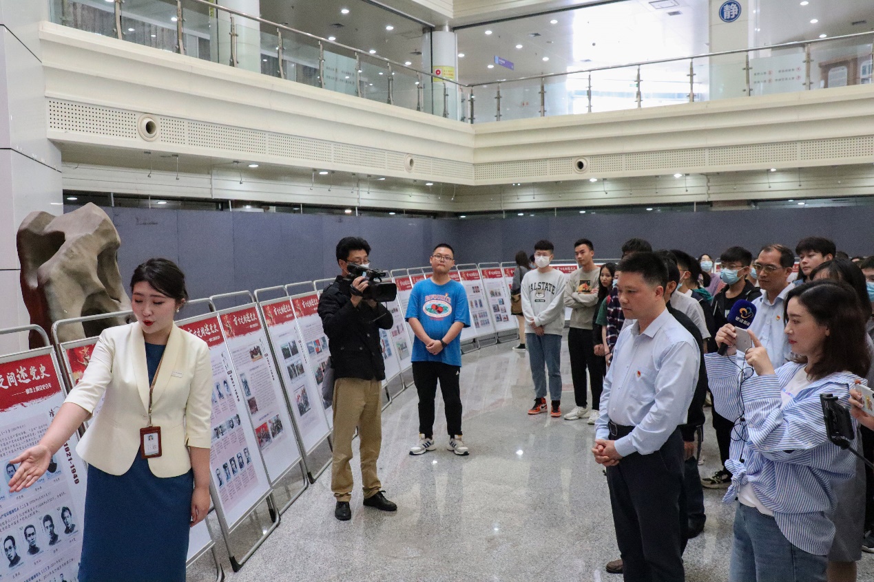 八路军武汉办事处旧址纪念馆讲解员为师生讲解展览内容。通讯员 王昊摄。