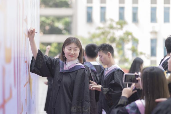 “毕业快乐!”“冲,新传人!”……活动中,学院不同专业的老师们也惊艳亮相,他们手持彩色加油牌,为毕业生们“打call”,同时与学生一起踏上“彩虹启航路”,并在签名墙上留下自己的姓名与祝福。“很荣幸能陪你们走过这一段,见证你们的成长与青春年少,老师只愿再相遇时,你们仍是少年!”当天,传播学专业老师吴宁深情发文,寄语毕业生们未来继续乘风破浪、无畏前行。