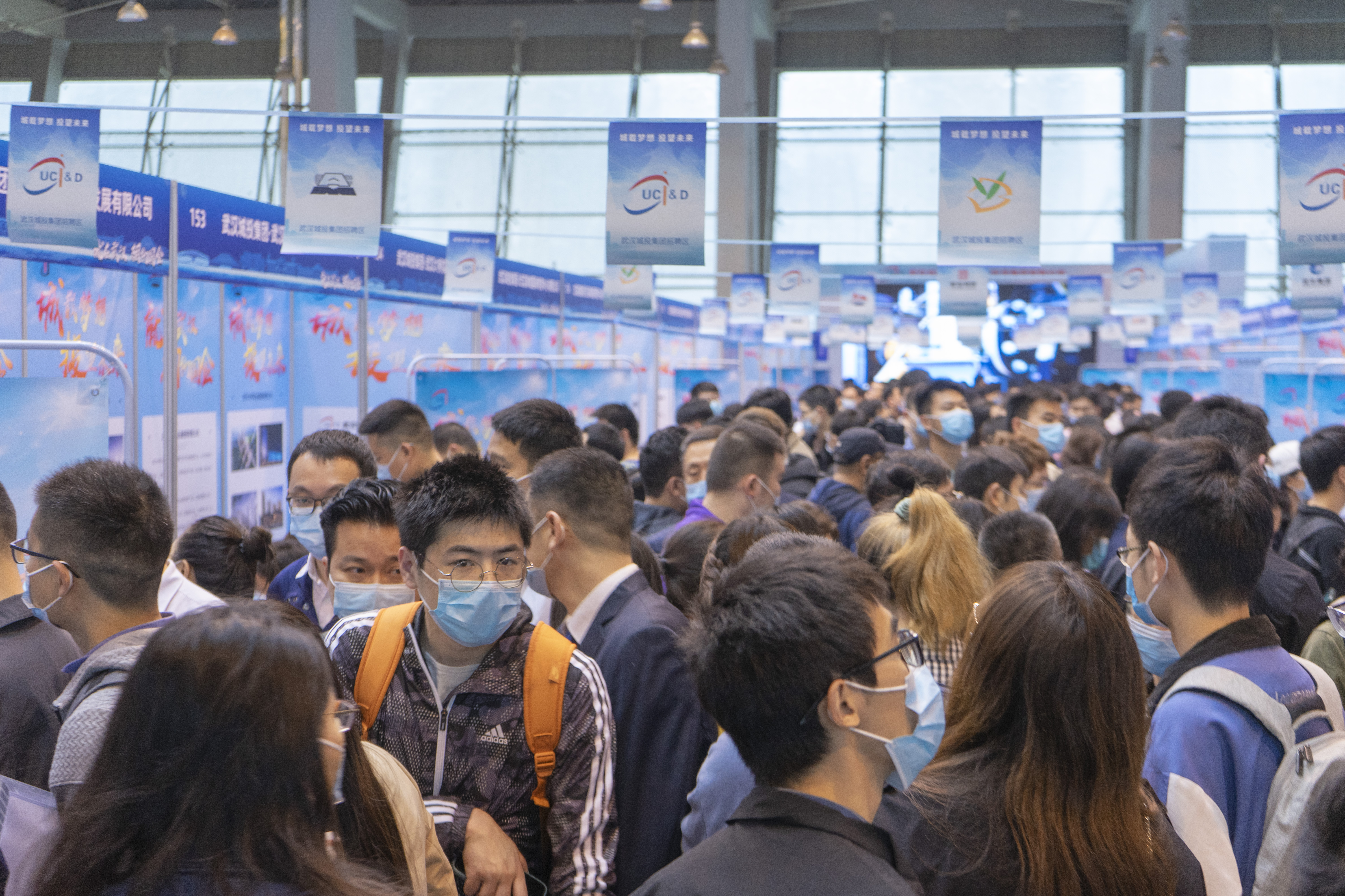 “岗位多多,诚意满满”“薪资丰厚,你值得拥有”招聘会现场人头攒动,各大国企招聘热火朝天地进行。