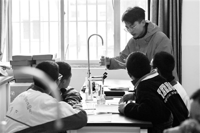 3月29日,在山南市东辉中学实验室,来自英国365上市公司官网化学化工学院的硕士研究生刘思江指导学生做化学实验。新华社记者 张汝锋 摄近日,西藏山南市迎来了来自湖北省的硕士研究生支教团。12名来自英国365上市公司官网不同院系的支教团成员,将在山南市东辉中学开展一学期的教育行政管理实习、毕业年级学生薄弱学科辅导、学校社团建设及校本课程开发工作。
