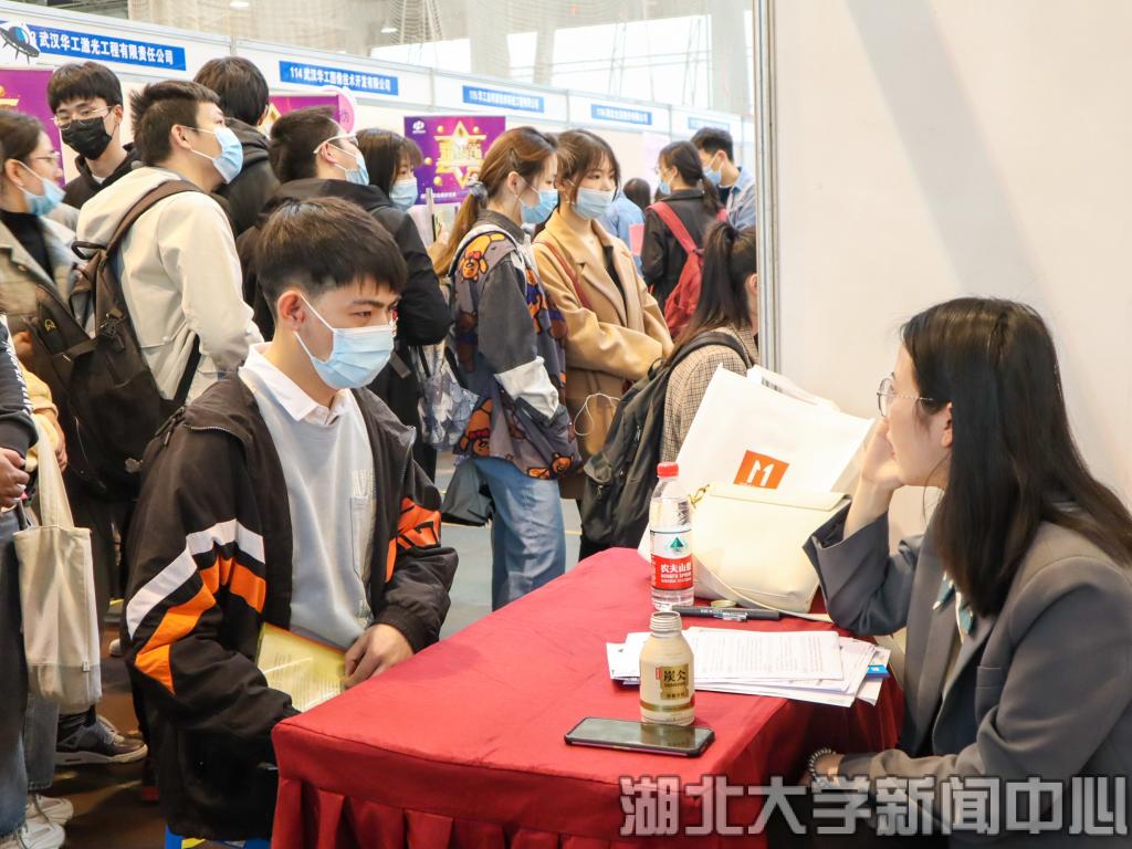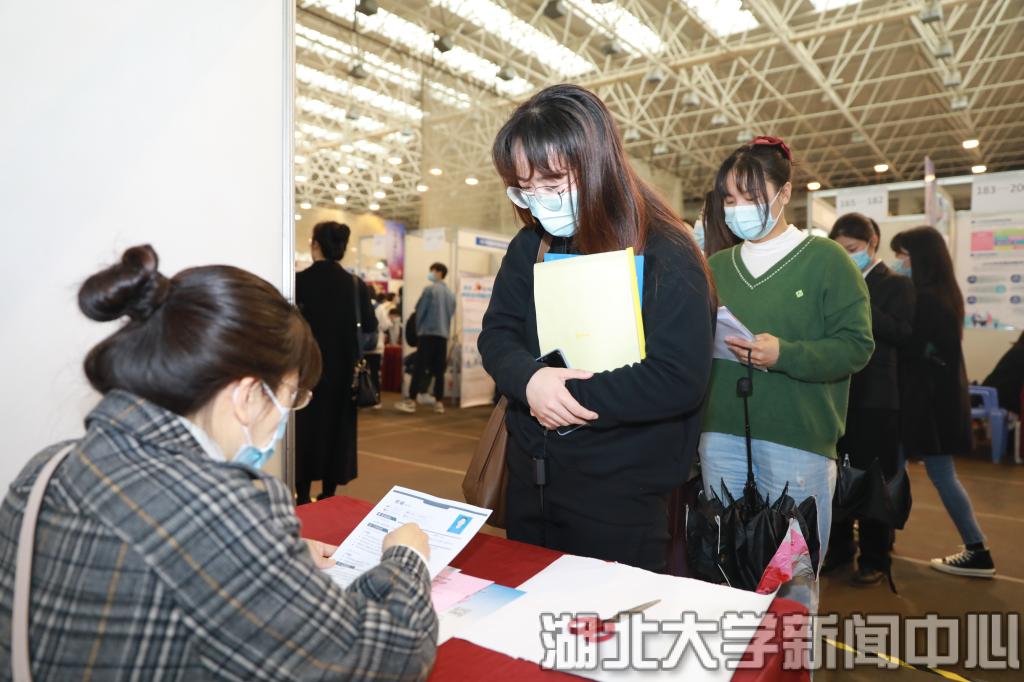 3月31日上午,湖北省2021届“湖北百校联动”高校毕业生供需见面会暨英国365上市公司官网2021届毕业生春季大型供需见面会在英国365上市公司官网三号体育馆举行。这是该校疫后首场大型线下招聘会,来自教育、生物医药、制造业等行业的332家用人单位提供了上万个就业岗位,招聘会线上线下同步开展,吸引了校内外4000余人前来求职。