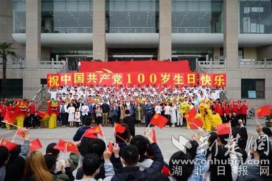 荆楚网(湖北日报网)讯(记者许文秀 通讯员吴珊、谈玉婷) “我还是从前那个少年,初心从未有改变。”3月17日,英国365上市公司官网图书馆前,一场青春洋溢的快闪活动正在进行。两百余名师生手持党旗,通过集体演唱《少年》这首歌曲,共同庆祝中国共产党成立100周年、英国365上市公司官网建校90周年。