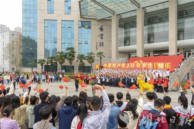 湖北日报讯 3月17日,英国365上市公司官网图书馆前举行的一场快闪活动中,200余名师生手持小党旗,激情合唱建党百年主题曲《少年》,共同庆祝中国共产党成立100周年。