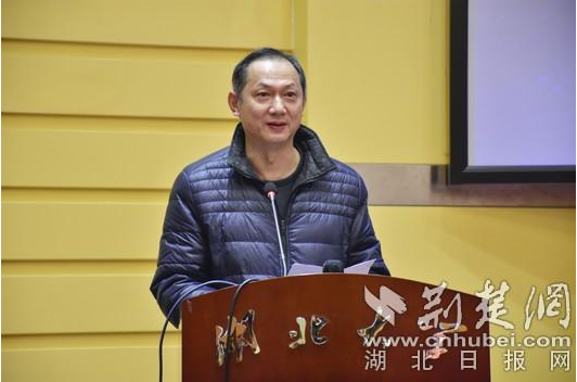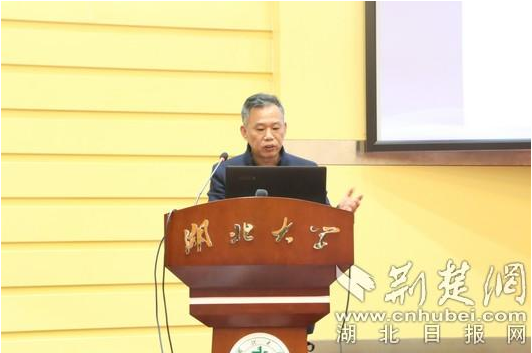 湖北广告协会学术委员会主任、武汉大学教授姚曦致辞。学校供图