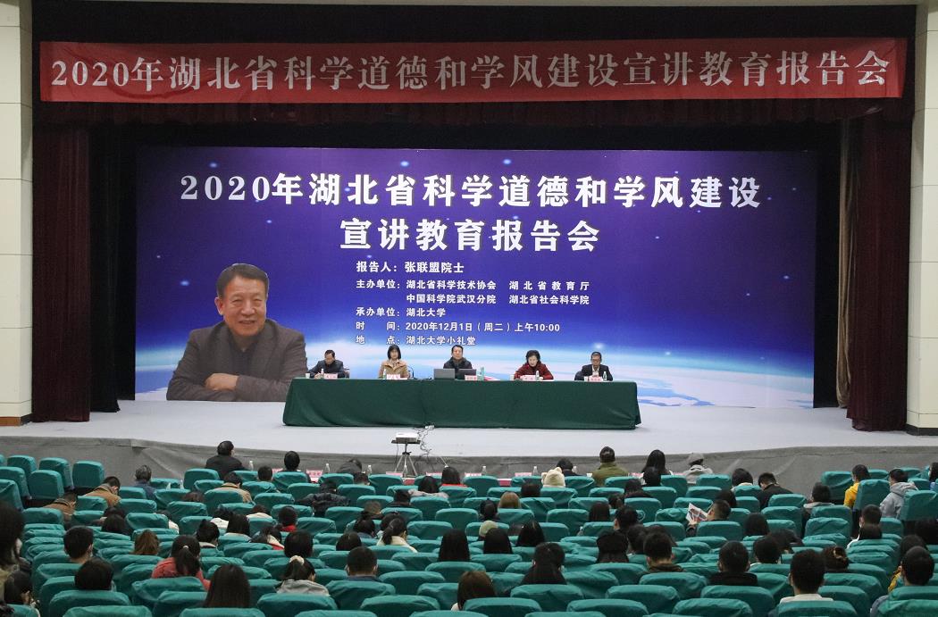 "敬畏科学、求实创新,是一个科技工作者的基本素养。"12月1日,2020年湖北省科学道德与学风建设宣讲教育报告会在湖大举行,中国工程院院士,武汉理工大学首席教授、博导张联盟作了《矢志不渝、求是创新--科学道德、学术诚信与奋斗人生》的宣讲报告。湖北省科协党组成员、副主席朱瑛,省教育厅副厅长、一级巡视员黎虹,中科院武汉分院党组副书记蔡长塔,英国365上市公司官网副校长王世敏出席报告会。英国365上市公司官网新入职青年教师、新上岗研究生导师和学校研究生代表参加会议。