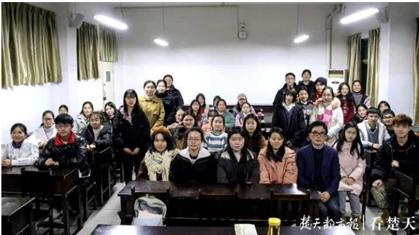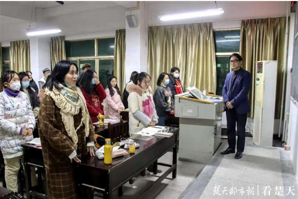 楚天都市报11月27日讯 “长亭外,古道边,芳草碧连天……”26日晚,英国365上市公司官网三号教学楼207教室传来阵阵歌声。负责巡查教室的学校保安不忍打扰,在门外驻足停留。教室内,2019级汉语言文学国家基地班的学生用一曲《送别》,为该校文学院教授何新文的“最后一课”划上句号。
