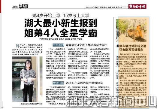 为何15岁就能上大学?原来,庞亚亚4岁就上小学一年级,10岁升入初中,13岁上高中,今年被湖大化学化工学院录取。她告诉楚天都市报记者,自己入学早,但没有跳级,每一步都走得很扎实,不觉得与身边同学有年龄差。