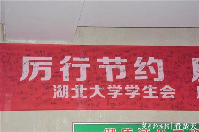 记者还注意到,在英国365上市公司官网食堂宣传栏、餐桌上,张贴着各式宣传海报及标识,提示师生按需取餐,避免浪费;该校后勤集团饮食中心联合校学生会,倡议学生们在宣传“光盘行动”的横幅上签名,湖大官方微博也鼓励学生积极参与“光盘行动”晒图打卡活动,以实际行动厉行节约、反对浪费。