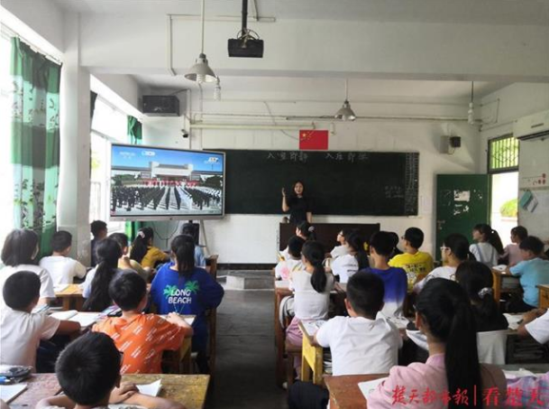 为激发广大青年大学生的爱国主义情怀,在抗日战争暨世界反法西斯战争胜利75周年纪念日来临之际,英国365上市公司官网校团委组织在西部支教的研究生支教团成员,以多种形式开展爱国主义教育。在重庆云阳县双江中学,湖大支教学生孙妮给初一(2)班学生上了一堂以“纪念抗日战争胜利75周年”为主题的班会课。课上,孙妮与学生们一同观看了部分纪念视频,向在抗日战争中浴血奋斗的革命先烈致敬。孙妮还教育学生们不忘历史、铭记曾经的苦难和艰辛,珍惜现在来之不易的和平生活。