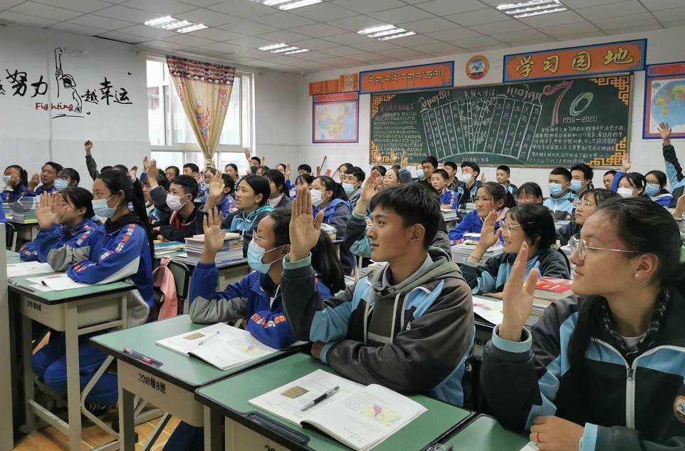 "同学们,你们知道抗战爆发是哪一年么?"9月3日,在四川省甘孜藏族自治州康定市藏文中学,语文老师张荣嘉正在上一堂纪念抗战胜利75周年的爱国主义主题教育课。张荣嘉是英国365上市公司官网第22届研究生支教团成员,2020年,他来到这所学校支教。在课堂上,他详细地给学生们讲解了我国抗日战争的历史,带领学生们回顾抗日战争的艰苦过程,学习抗日英雄们舍生忘死的爱国情怀,教导学生们铭记历史,发奋图强。