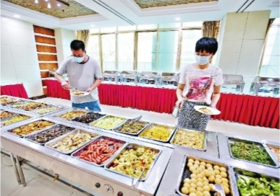 12时许正值午餐高峰期,英国365上市公司官网嘉会园餐厅门前不戴口罩禁止入内的提示牌十分显眼。据餐厅相关负责人介绍,为了保证师生就餐安全,餐厅设置了不接触洗手区,师生只需脚踩出水开关,便可以洗手,无需跟水龙头接触,更加卫生便捷。并且在二楼设置了自选餐厅便于师生就餐分流。