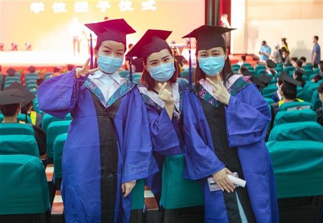 “2020湖大爱你,校长的寄语让我们泪目,2020,我们也爱湖大。今年的夏天我们不要告别,亲爱的湖大,我们肯定还会再见。”21日,朱金麟同学从恩施回到湖大,今天一早,她穿上崭新的学士服,和同学一起,激动不舍地参加了毕业典礼。