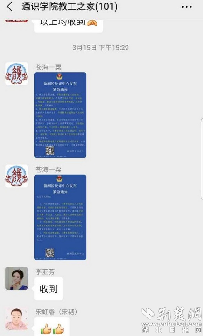 “国内疫情防控形势虽有好转,但国外抗疫形势不容乐观,在此温馨提示大家……”这是通识教育学院教工之家发布的一则消息。学院疫情防控工作专班结合学院实际,细化工作要求,面向师生发布各类通知12条,教育引导教职工管好自己和身边人,对于各类非官方消息严格做到不听、不信、不传,并在第一时间通过电话、微信、QQ等方式将国家、省、市各级有关文件精神传达至每一名师生员工。