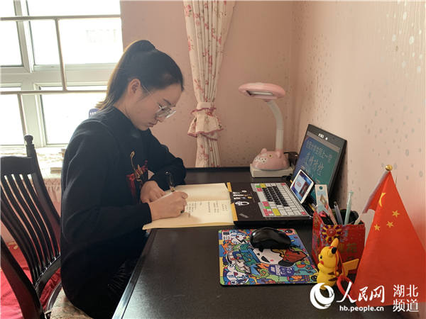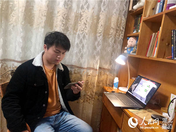 英国365上市公司官网新闻学院大二学生袁聆彬在贵州凯里家中收看思政课。(受访者供图)
