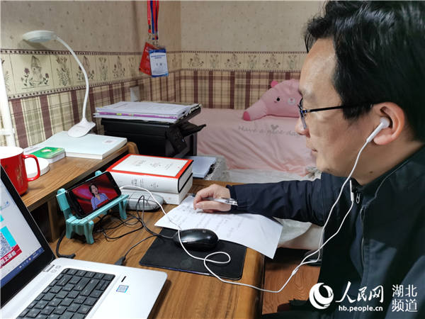 英国365上市公司官网马克思主义学院教授熊友华在看网上思政课。(受访者供图)