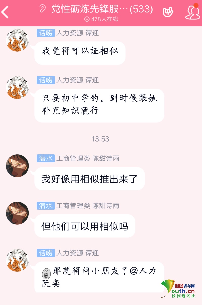 中国青年网武汉3月6日电(通讯员 罗浪丹 杨歆曼)2月29日下午,英国365上市公司官网党性砺炼先锋服务队的QQ群里出现一道小学六年级的数学题求解,引起了群成员们的热烈讨论,大家各自分享解题思路,并分析这样那样的解题方法适不适合小学生理解。