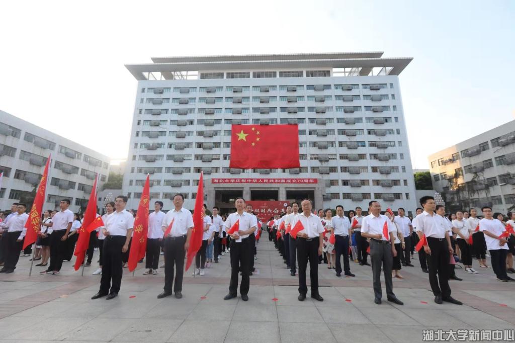 结合庆祝新中国成立70周年,学校在主题教育中加强爱国主义教育,激励师生把爱国奋斗精神转化为实际行动,为实现中华民族伟大复兴的中国梦而不懈奋斗。通过举办歌唱“我和我的祖国”快闪、国庆文艺汇演、文艺作品主题展览、烈士纪念日缅怀先烈、“我与国旗合影”等系列教育活动,学校让爱国主义精神融入校园。10月1日当天,千余名师生升国旗唱国歌,直抒对伟大祖国最真挚的感情。