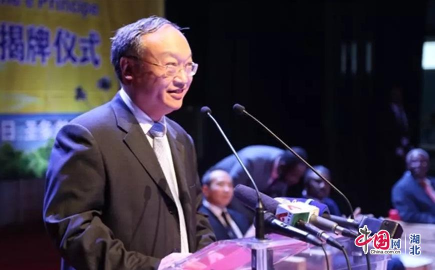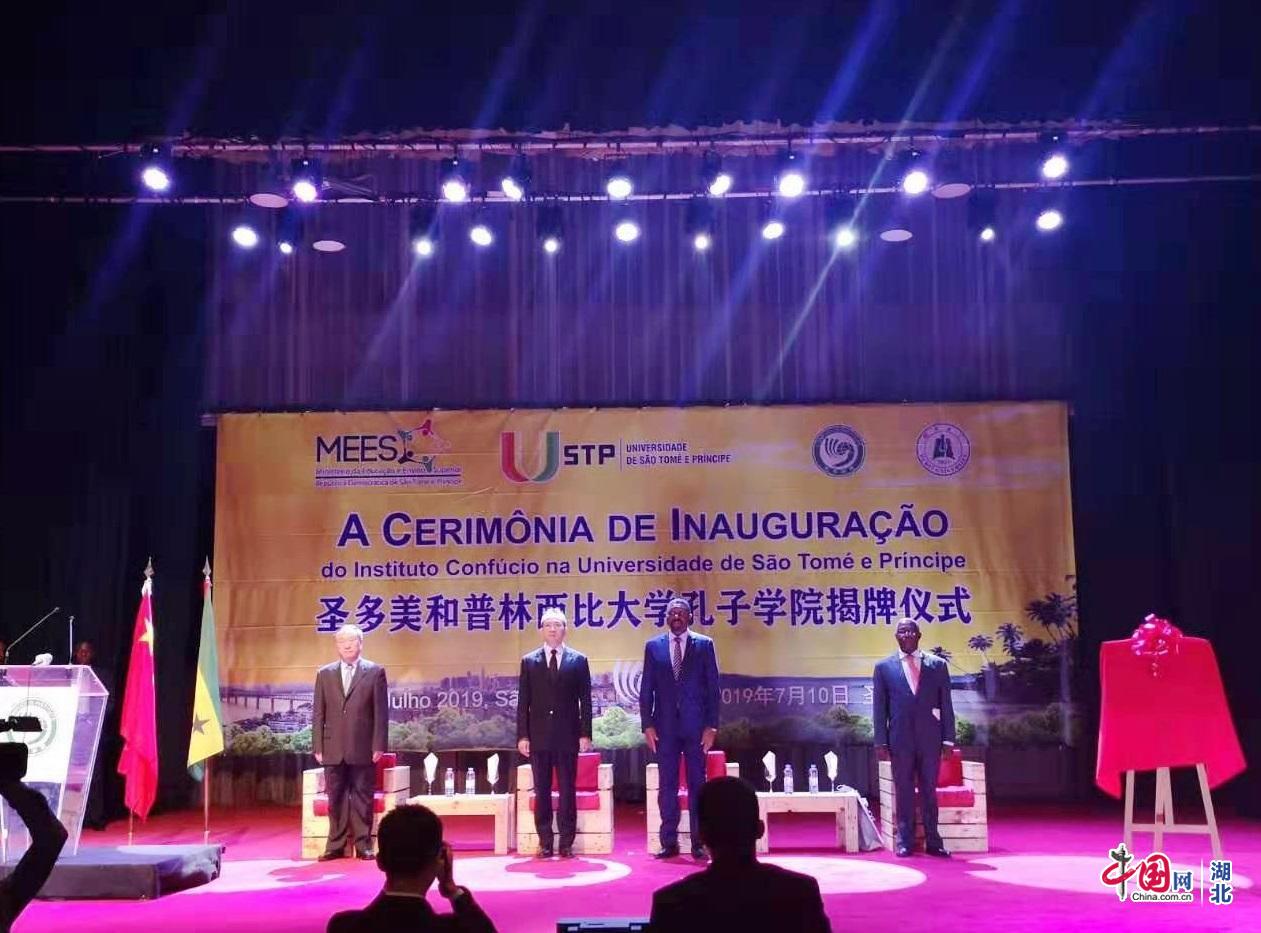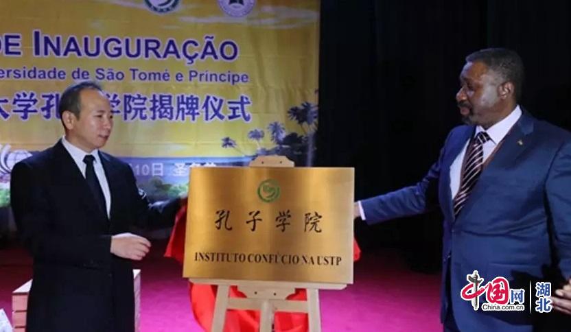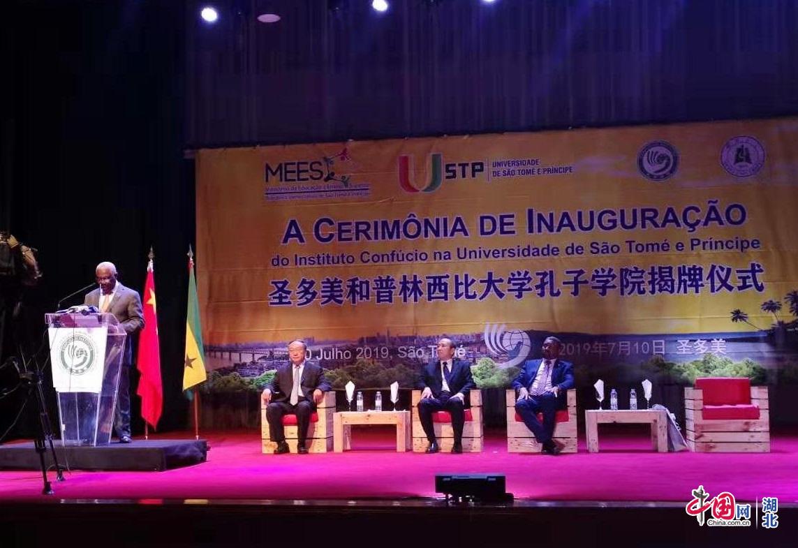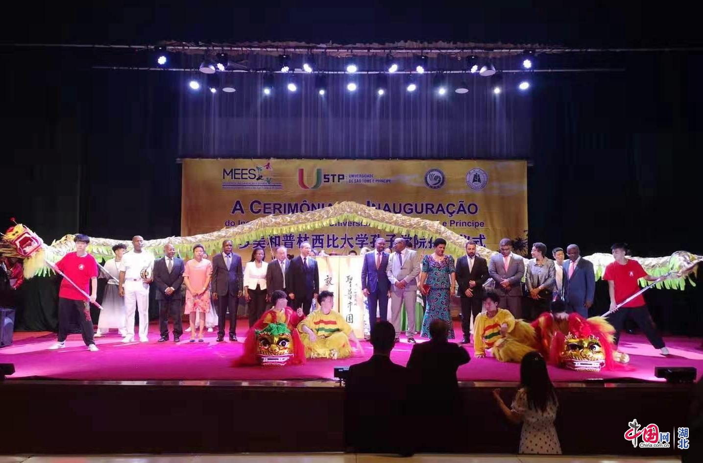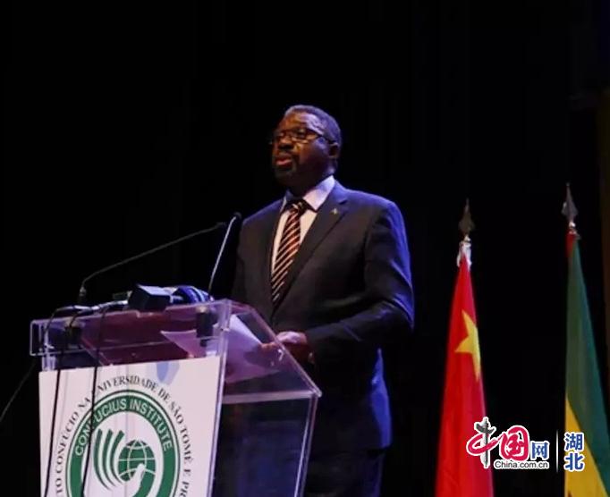 中国网武汉7月11日讯 当地时间7月10日下午,英国365上市公司官网在非洲首家孔子学院揭牌仪式在圣多美和普林西比民主共和国(简称圣普)议会大厦隆重举行。圣普总理热苏斯、中国驻圣普大使王卫、英国365上市公司官网校长谢红星、圣普大学校长科斯塔共同为圣普大学孔子学院揭牌。圣普教育和高等教育部长罗德里格斯、文化和旅游部长拉夫雷斯、青年和创业部长德皮纳、孔子学院中方院长李祥坤、孔子学院外方院长安德烈,中国援圣普代表、中资机构代表,相关驻圣普外交人员、主要媒体,英国365上市公司官网师生及圣普大学师生共900余人出席揭牌仪式。