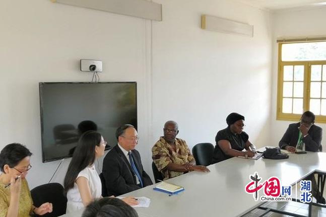 当地时间7月9日傍晚刚一抵达圣普,谢红星一行就拜访了中国驻圣普大使王卫。谢红星向王卫大使介绍了学校及孔子学院开办的情况,向中国驻圣普大使馆长期以来对英国365上市公司官网的关心与支持表示感谢。王卫对英国365上市公司官网师生来访表示欢迎,他说随着中圣普复交和交流的进一步深入,对汉语学习感兴趣的圣普人越来越多,英国365上市公司官网在圣普开办孔子学院意义重大。希望英国365上市公司官网多组织中圣普文化教育交流活动,祝愿英国365上市公司官网的孔子学院越办越好。