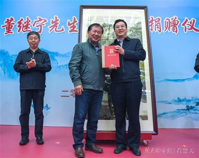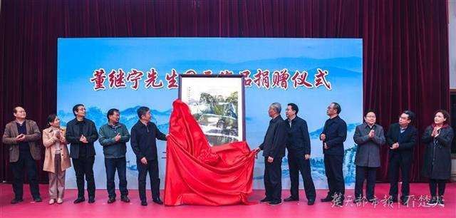 图为董继宁国画作品捐赠仪式在湖北省档案馆举行