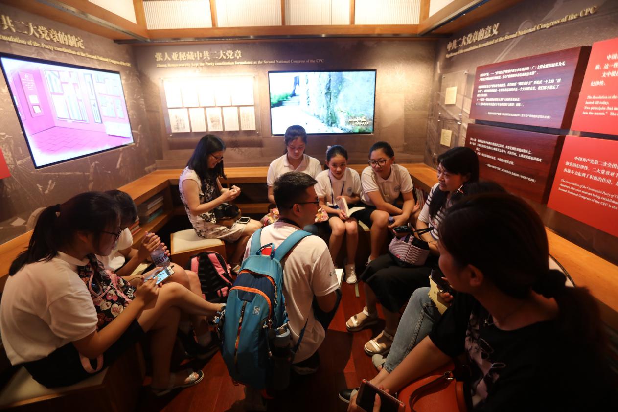 在上海和嘉兴期间,采访团先后来到上海市城市规划展示馆,中共一大、二大会议旧址,南湖革命纪念馆和“红船”所在地,参观展览,专访相关馆员和讲解员,了解一件件历史实物背后的故事,并与来自全国各地前来参观的人进行交流。采访对象中,有年仅17岁、前来进行暑期调研的高二学生,也有年过八旬、有着60多年党龄,前来重温入党誓词的老党员,还有来这里学习党史的留学生。