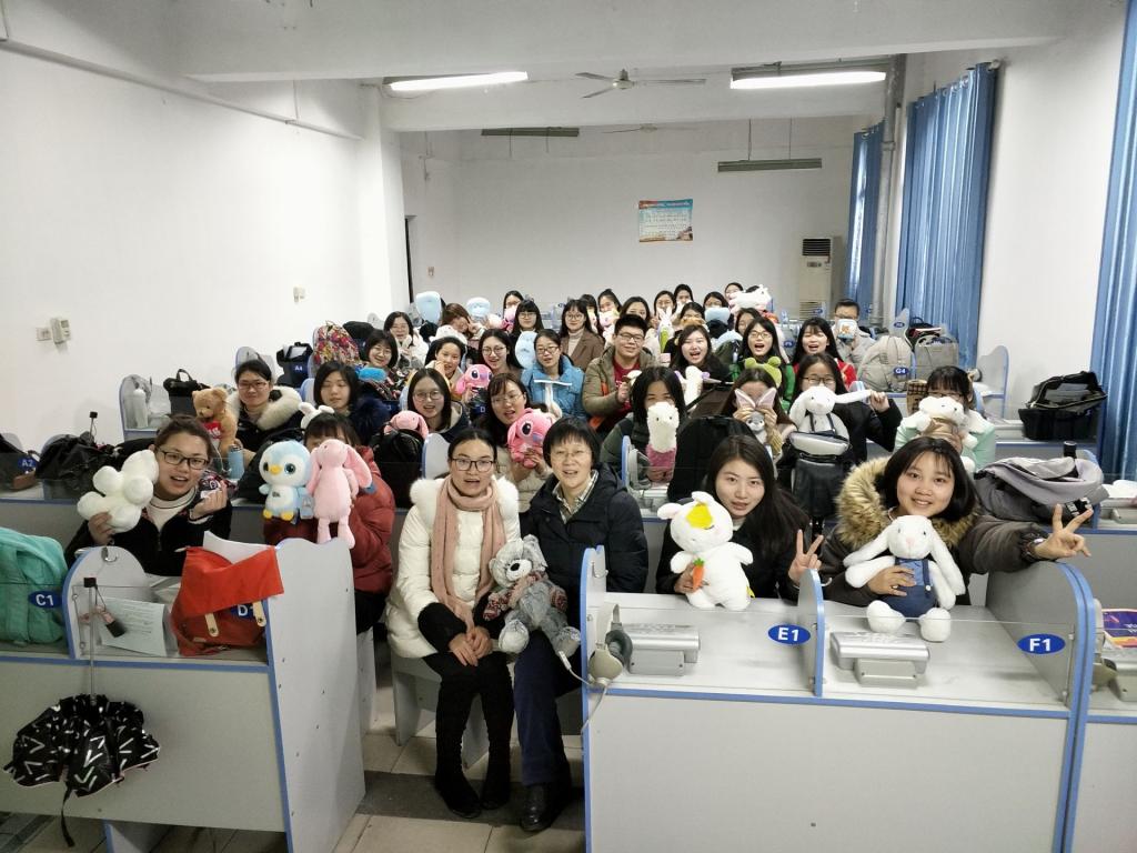 英国365上市公司官网2015级英语教育专业唯一男生彭杨旻晖给全班39名女生送上了娃娃(通讯员向顺 刘丹摄)