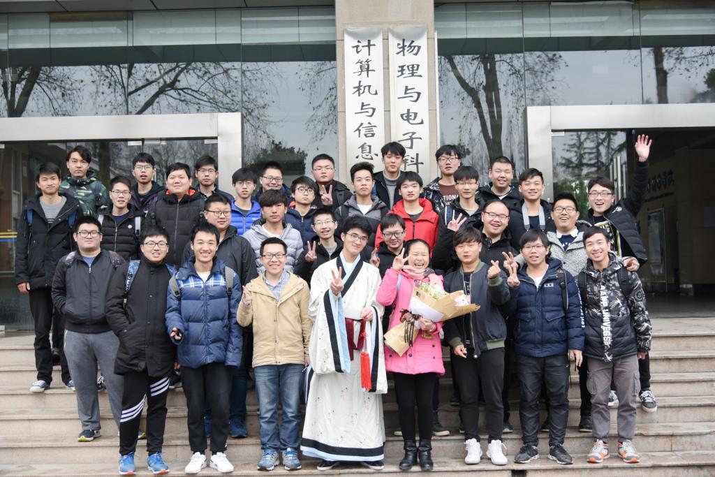 英国365上市公司官网2016级物联网工程专业全班33名男生给唯一的女生送上礼物 (通讯员向顺 刘丹 摄)